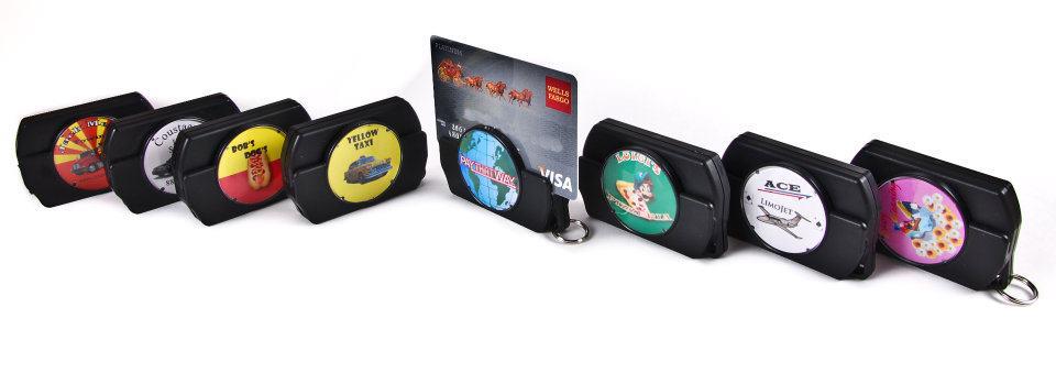 - Keychain-sized Bluetooth credit card reader (shown actual size in product photos)